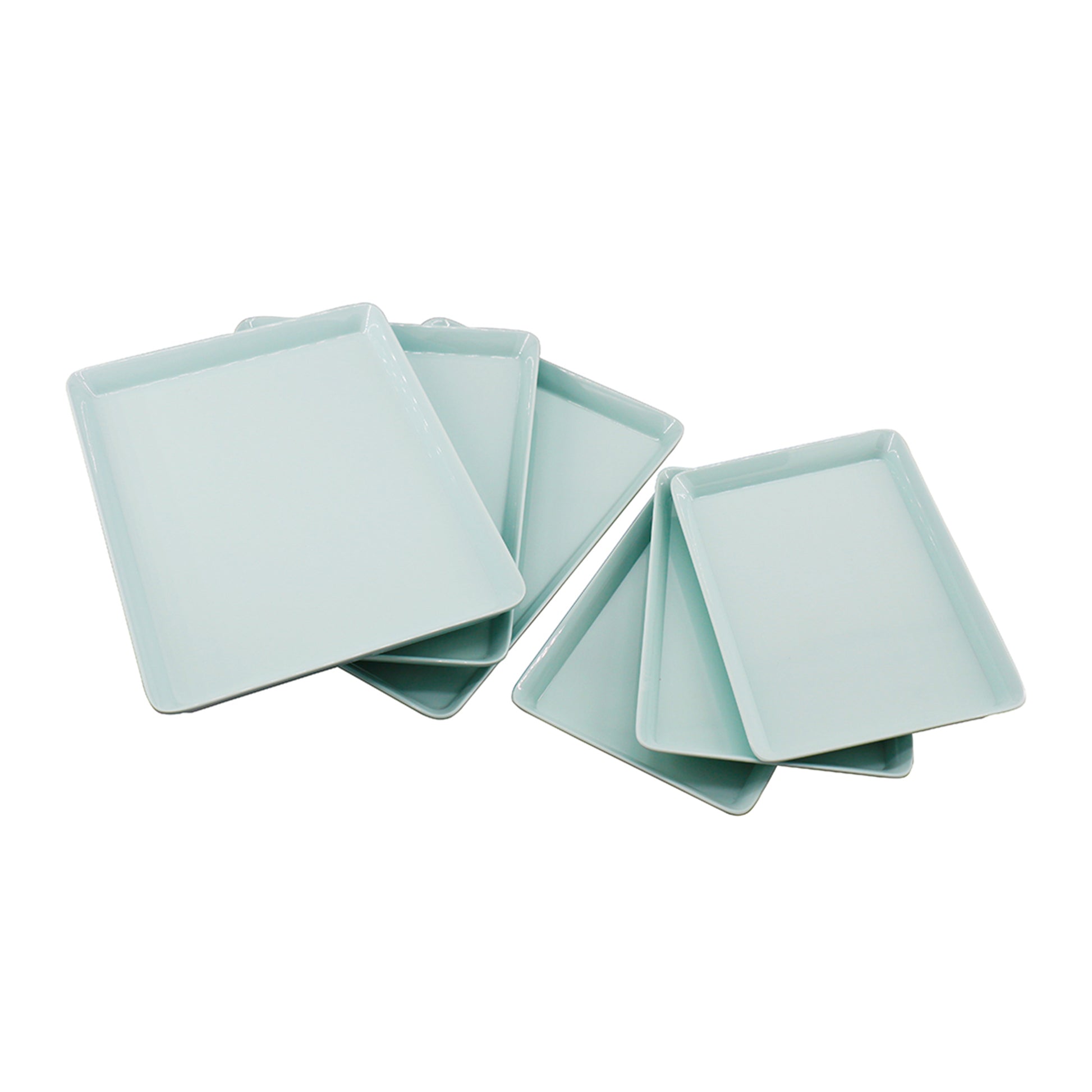 Pure rectangle melmac plastic tray is unbreakable and can be use on indoor restaurant serving or outdoor picnic.